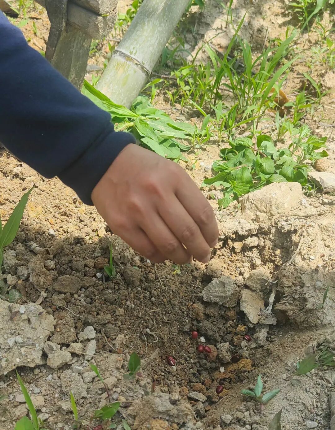 在山水印最美风车公路茶园,一群人早早地开始了她们的“农忙”。自从决定在茶园种豆后,撸起袖子就剩干了。